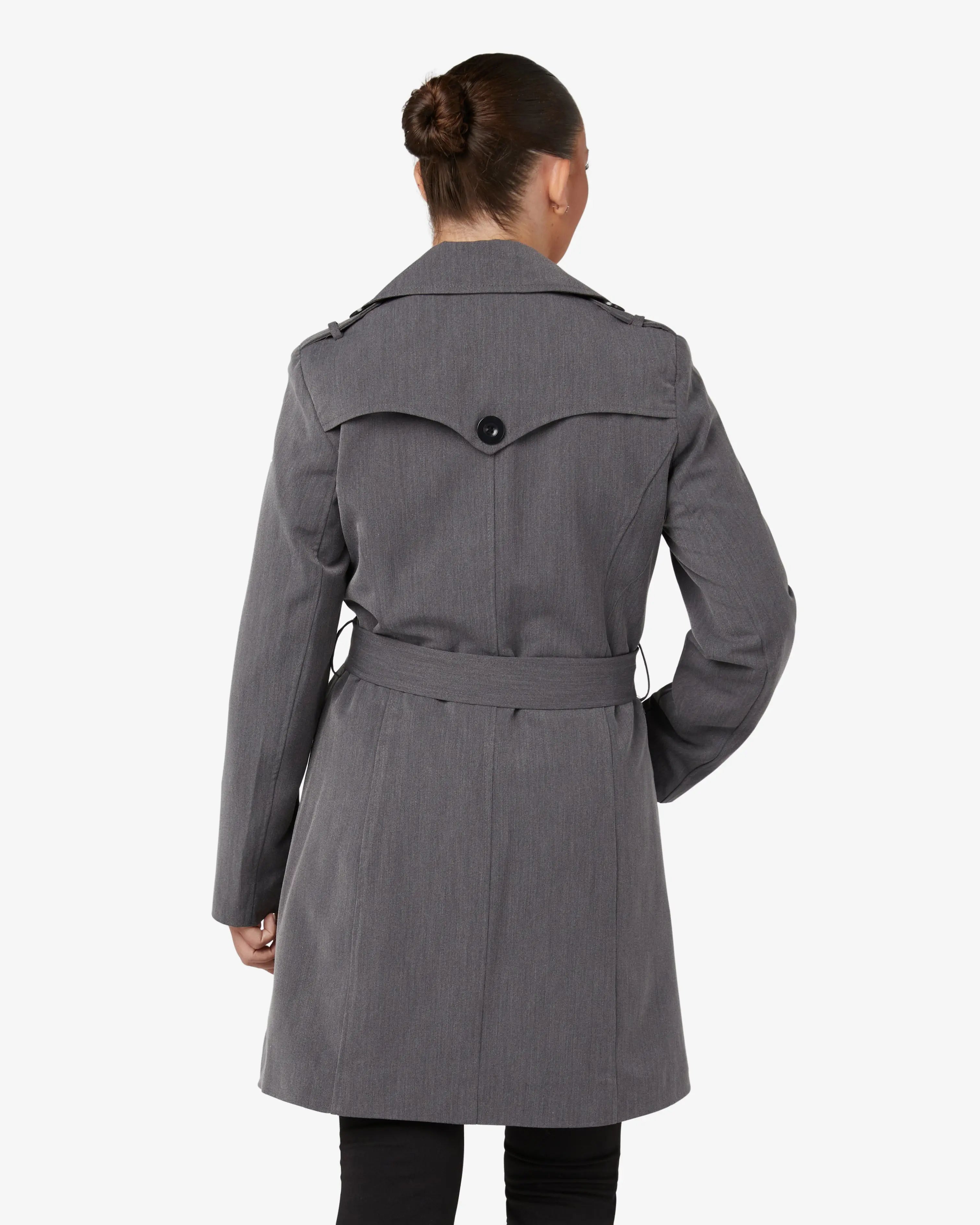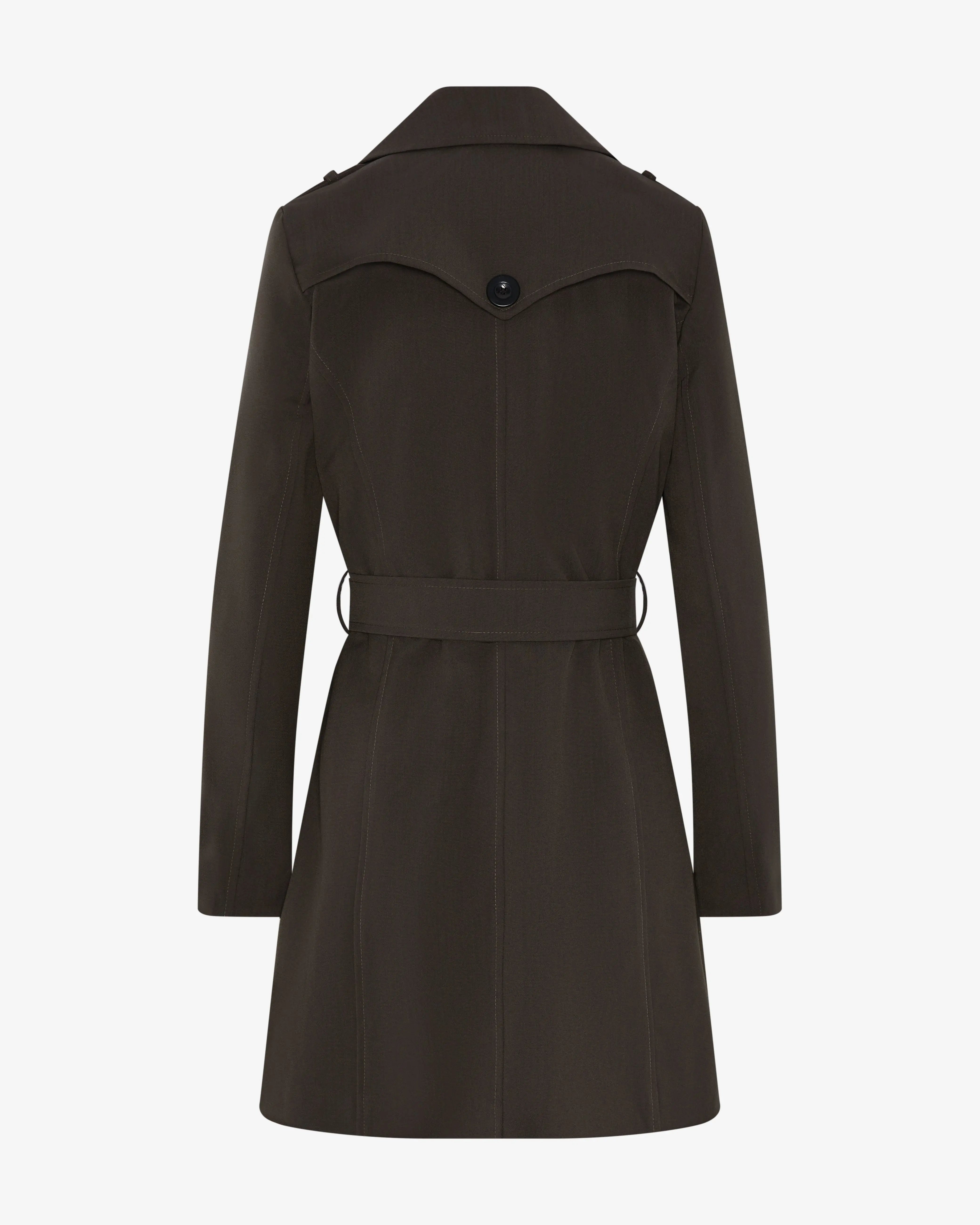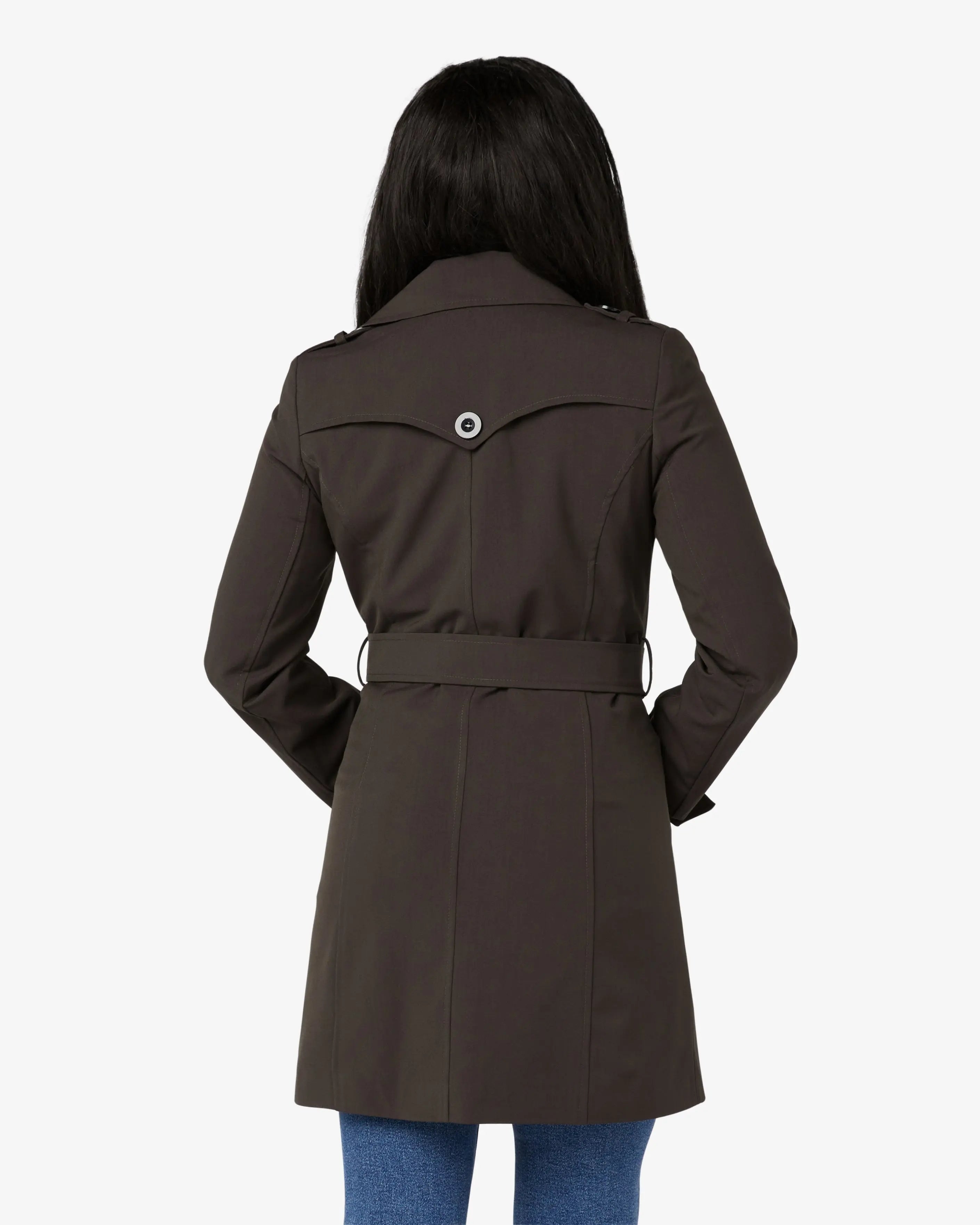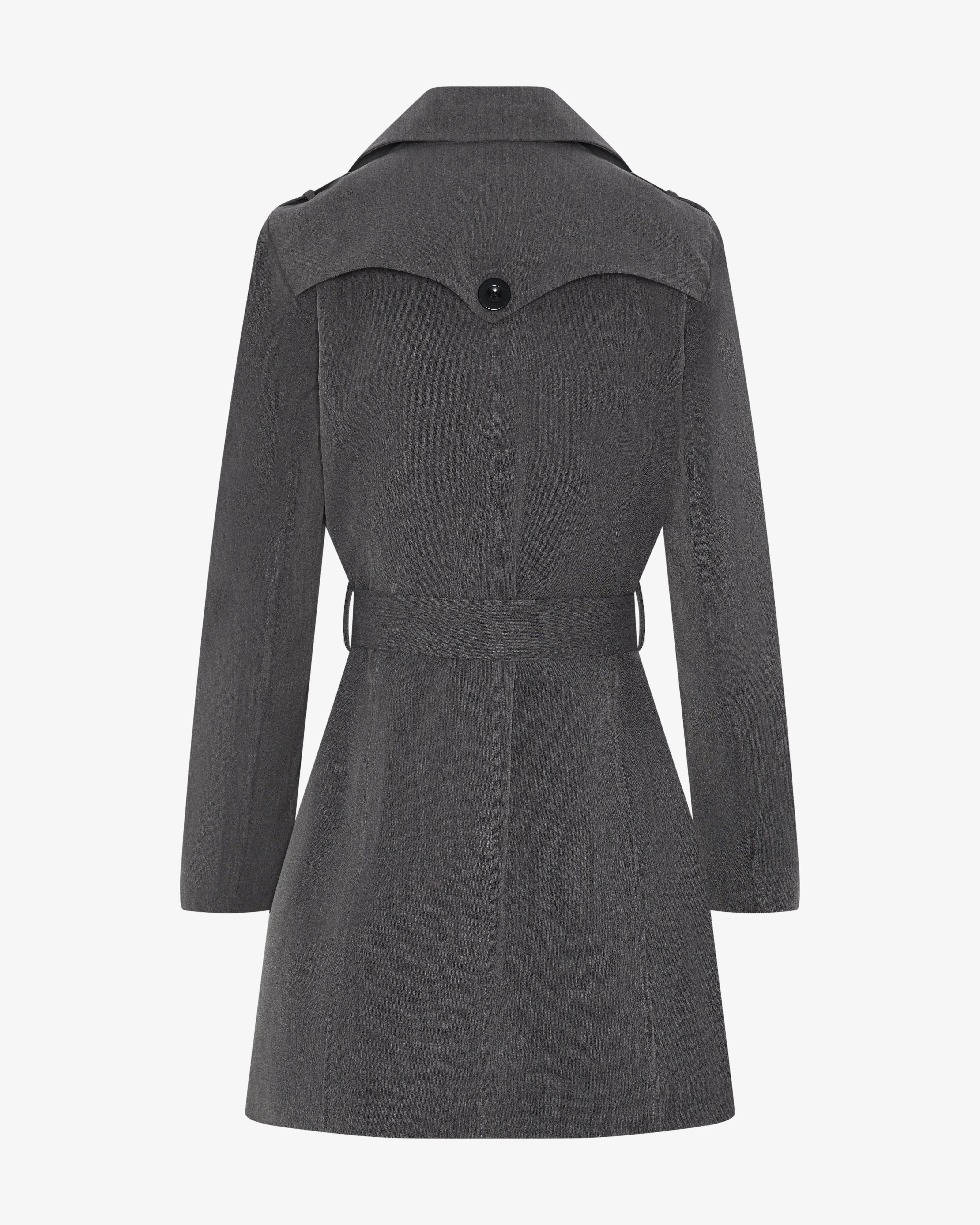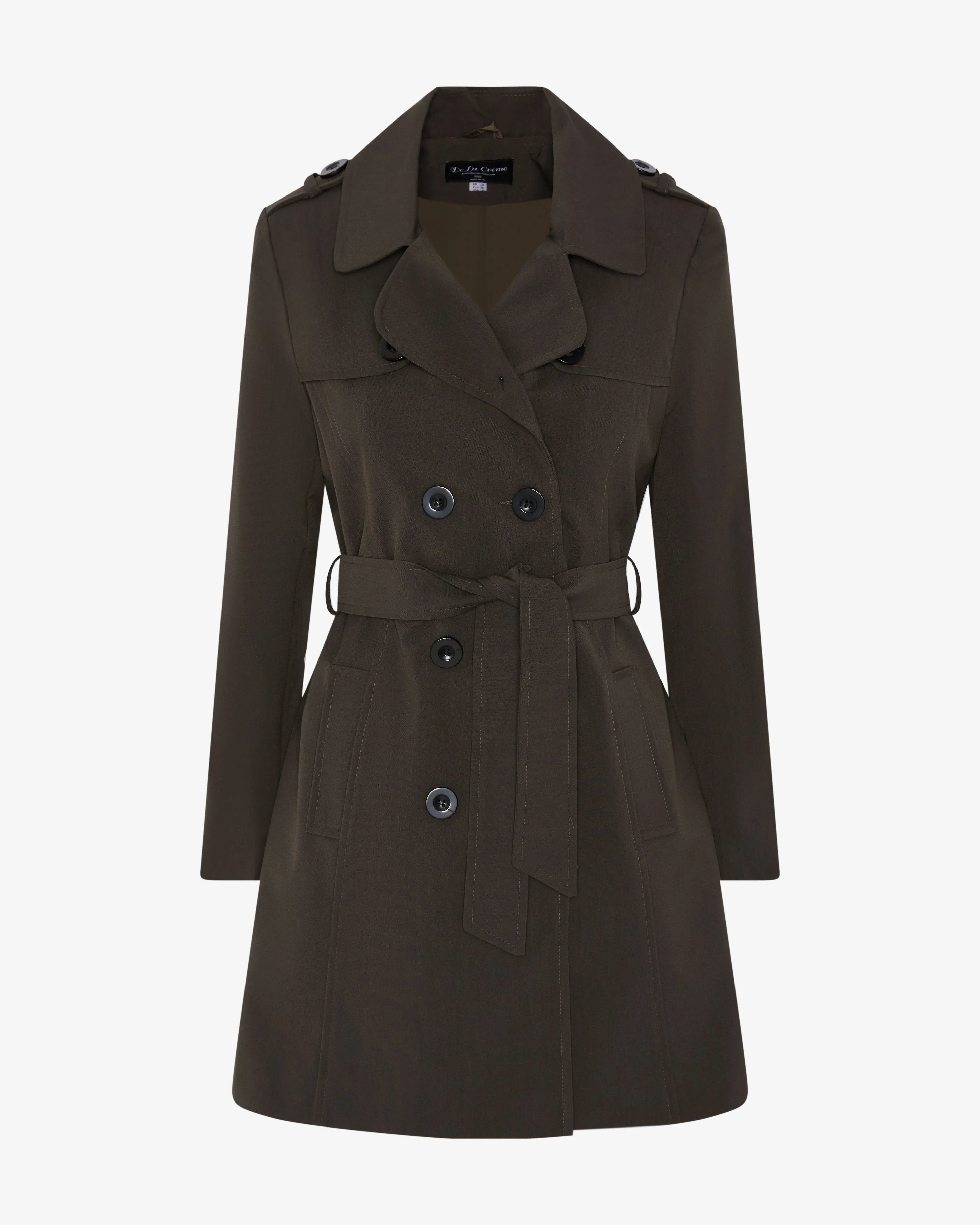 Women's military trench coat featuring Double Breasted Fastening, 2 side pockets and is Hip Length. Military style epaulettes and Rear yolk to finish. Fully lined inside.